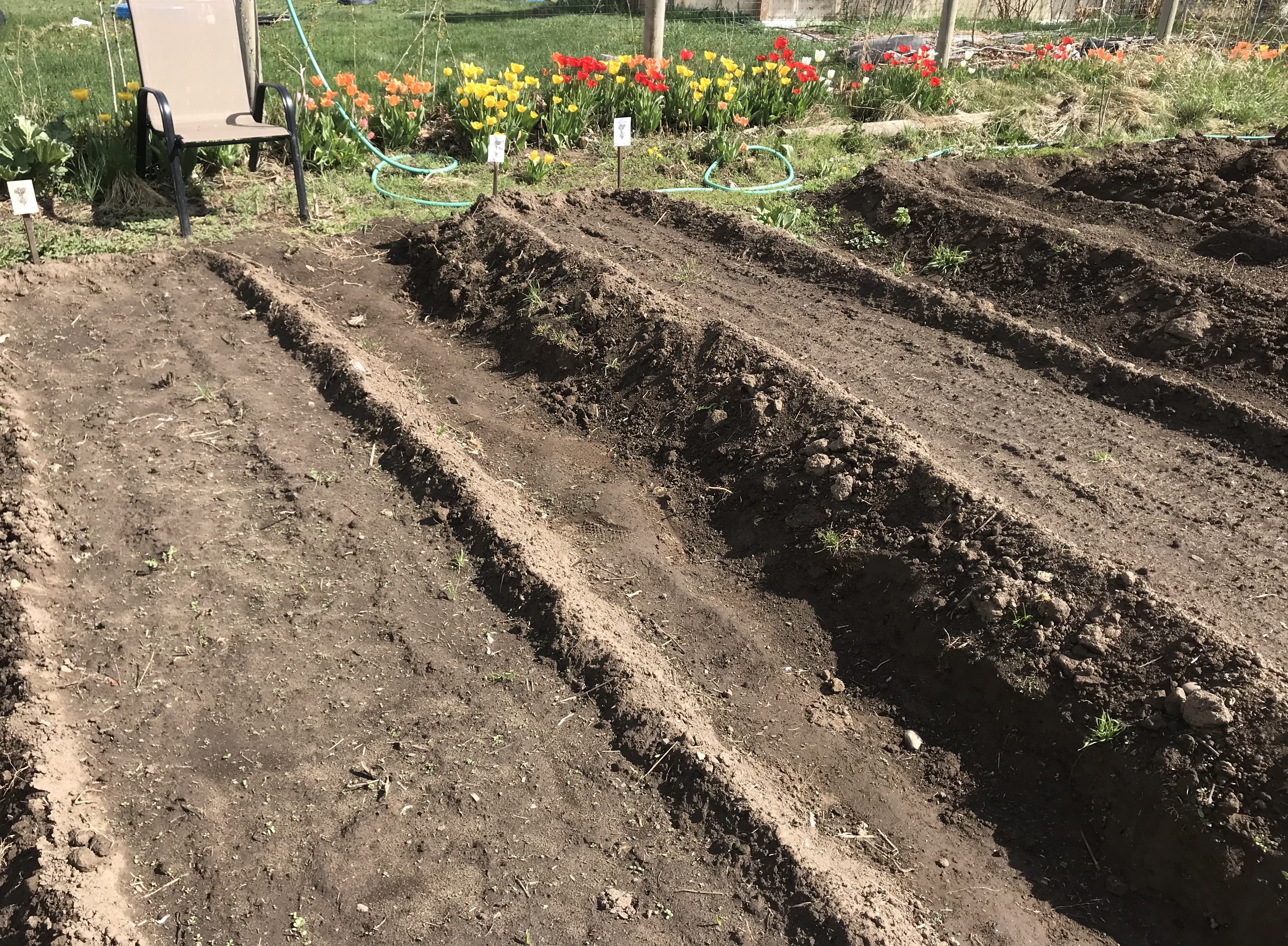 The plantings 2020: 12 raspberry plants (a patch begun!), 73 tomato plants (fresh slicing, marinara, salsas), 33 sweet peppers (raw salads, salsas, curries, bean dishes), 14 hot peppers (curries, salsas, drying), 100 onions (all of the above), beaucoup de beets (raw salads, pickled), many carrots (for fresh crunching), and basil and thyme to flavor the lot. There’s a healthy corner of four robust rhubarb plants and grape vines crawling the fence like gang busters.