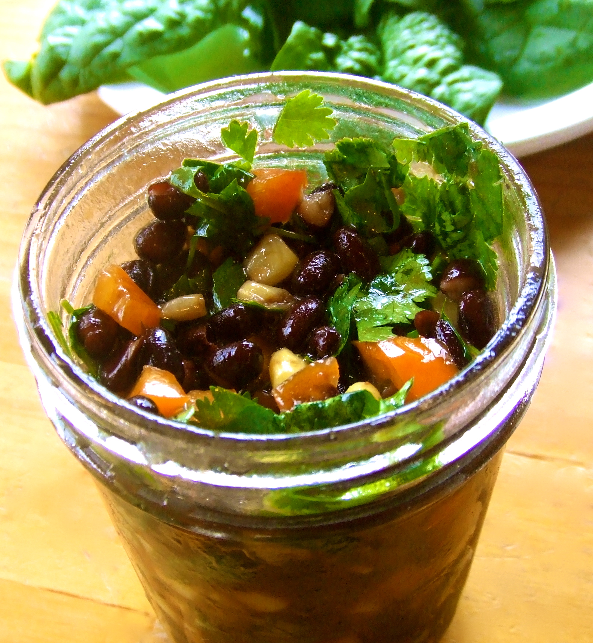5~ Pour an ample portion of dressing-bean combo over each serving. Finish with fresh cilantro if desired and serve.