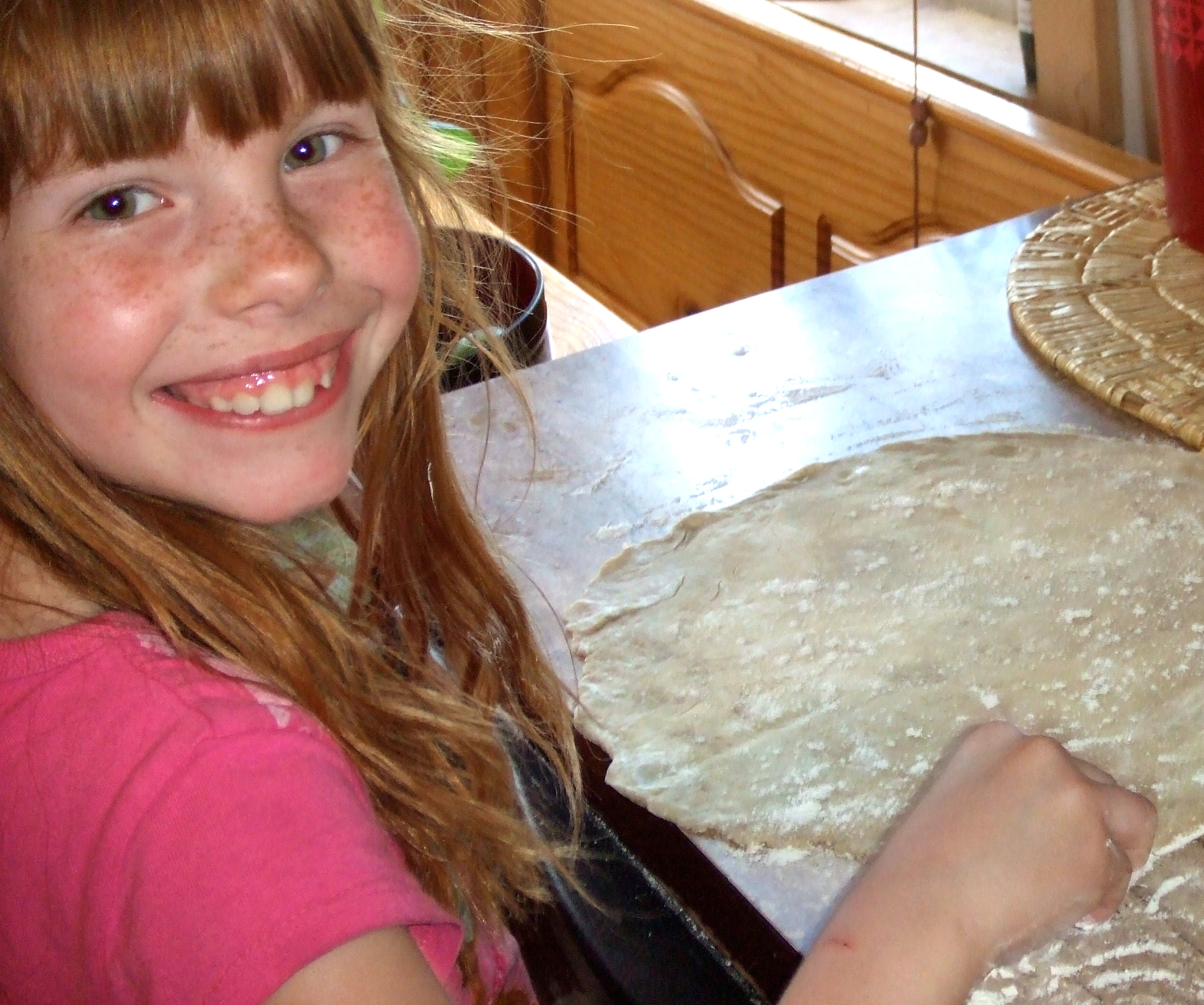4~ Roll out cooled dough on a floured surface; place dough in buttered dish and flute edges.