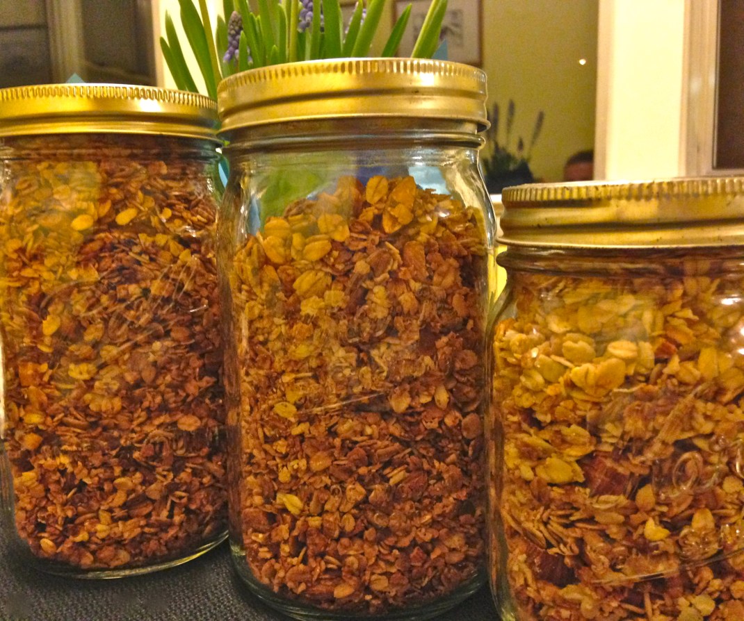 Growing up our mother made granola from scratch, and it was so delicious, it seemed to us kids to be a treat rather than standard breakfast. Overnight family hiking trips included her granola, and it not only hit the spot taste-wise but sustained the body for long periods, being great fuel for exercise and a father who required good, productive work from all.